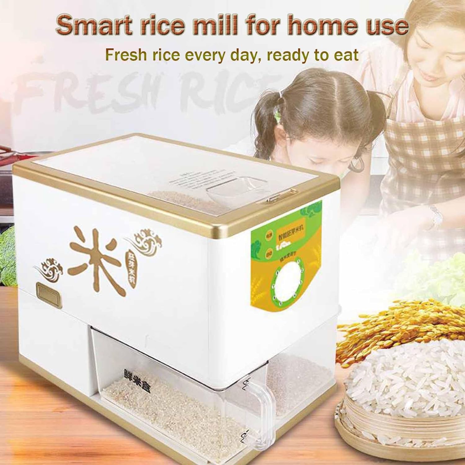 Our electric rice mill uses steel rice knives and copper motors, which can effectively remove the husks and retain the nutrients of the grains.Choose germ rice and choose a healthy life! Enjoy fresh rice every day, freshly ground and ready to eat. The aroma and sweetness of the rice are preserved, ensuring you get a healthy and nutritious meal every time. Start your journey to a healthier quality of life withrice milling and peeling machine.Features1.Alloy steel rice knife with 144-grade fine rice holes greatly improves rice milling accuracy.2.The Home Smart Rice Mill rice milling speed is adjustable from 0 to 8, and the rice can be ground into polished rice or light brown rice.3.The Electric Rice Milling Peeling Machine motor is made of copper, has strong power, and is equipped with a gearbox to effectively reduce noise.4.Micro-computing, timed and quantitative, to protect your health and family.5.The grain huller top cover is equipped with a micro switch. Only when the cover is closed, the machine will start grinding rice to ensure the of the operator.SpecificationMaterials: plastic + metalColor: WhiteOutput: 250-500g/minRated power: 350WDimensions: 380x340x240mmWeight: 8kgPacking list:1x household rice mill